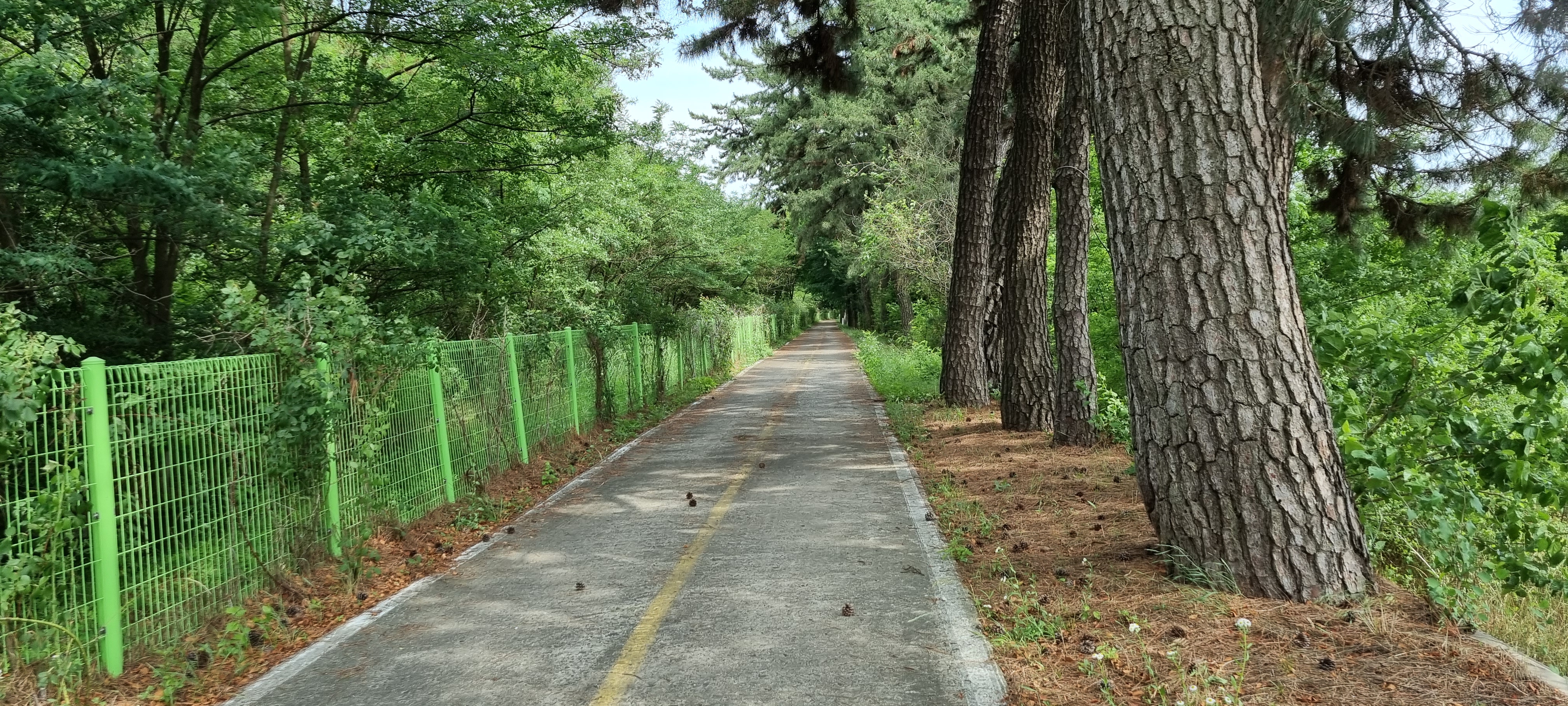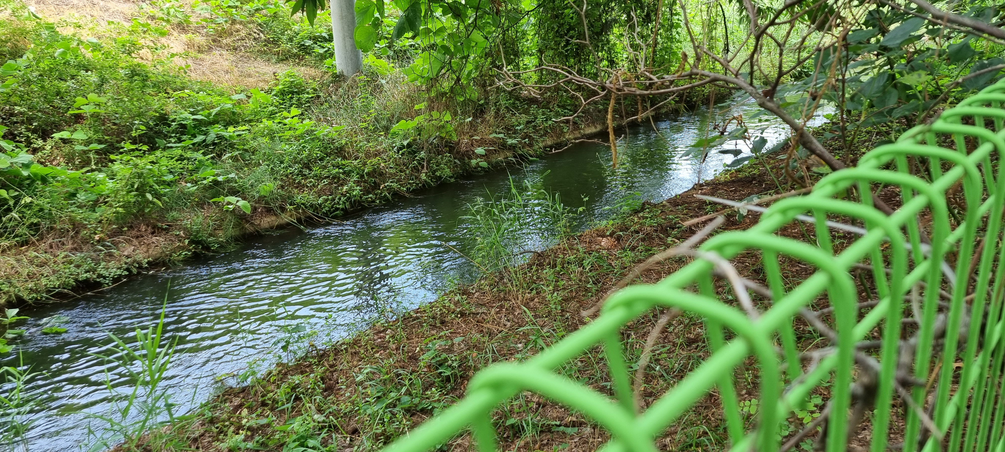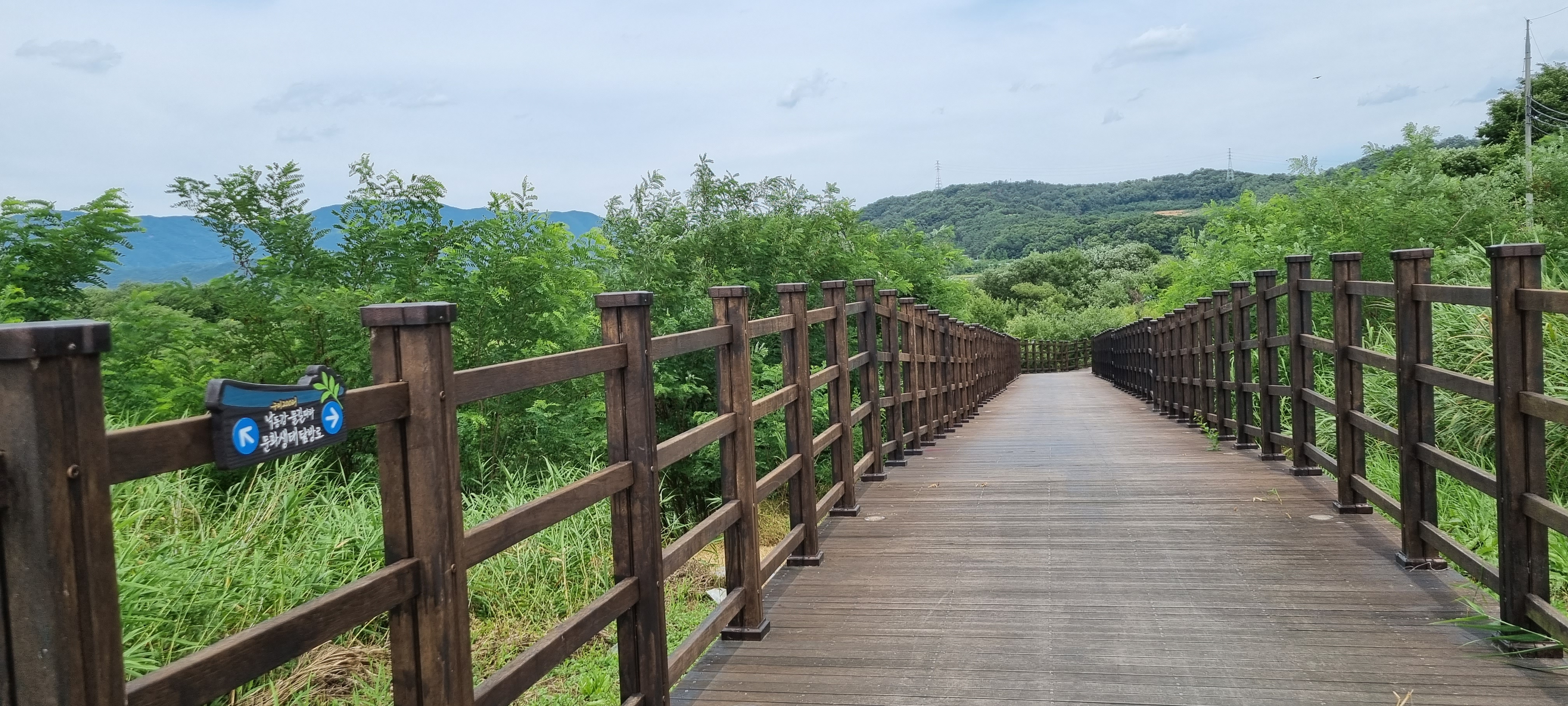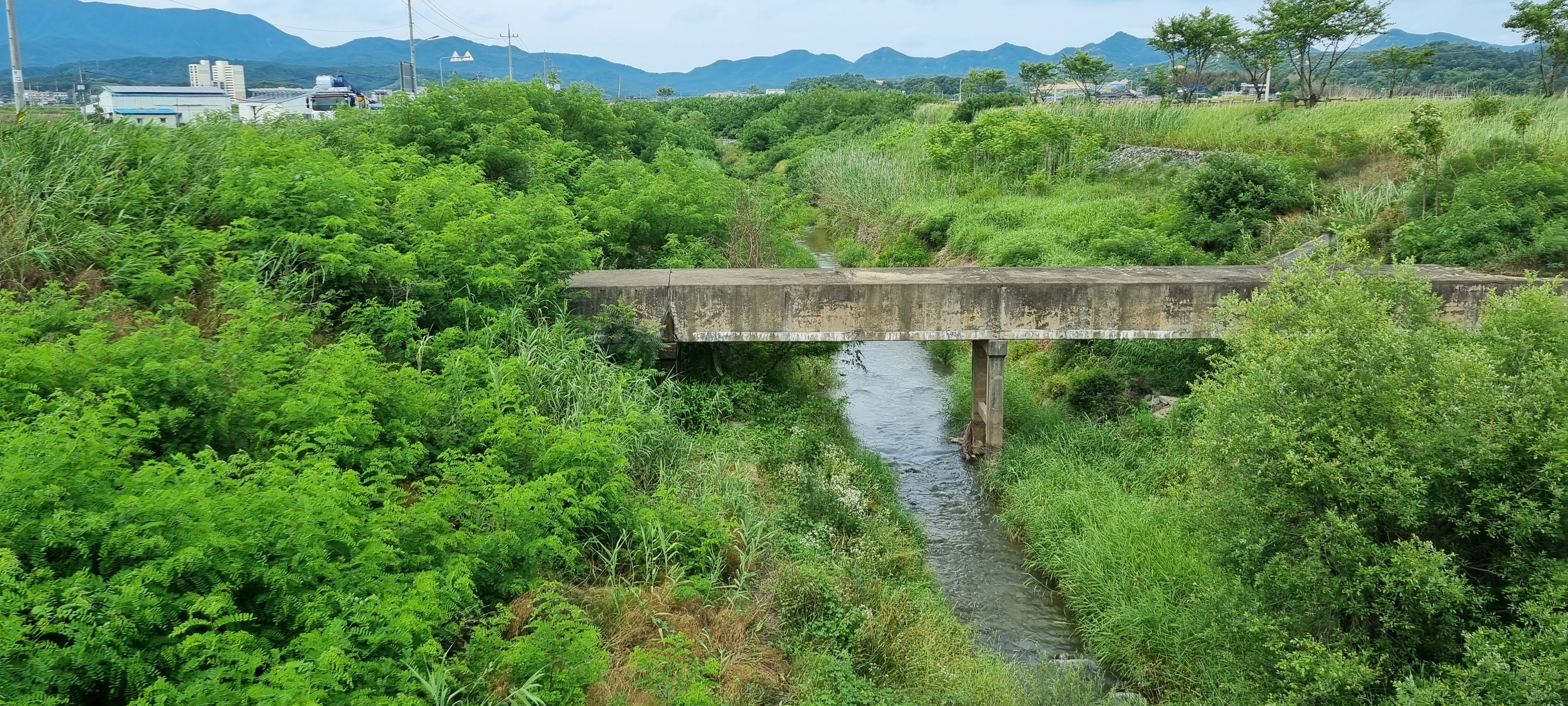 바로 옆 강변하우스 카페에서 물냉면을 시켜 들어 속을 식힌 후 숭선대교를 건너 낙동강 좌안의 자전거길로 들어섰습니다. 자전거길 양쪽으로 초록색 철망의 펜스가 쳐 있었는데, 왼쪽 펜스 너머로는 농수로를 따라 물이 콸콸 흘렀고, 오른쪽 펜스 너머로는 상수원보호구역으로 설정되어 사람들의 출입을 막았습니다. 자전거길을 따라 25번 도로와 나란한 방향으로 진행해 해평습지를 지난 후 낙동강 제1지류인 습운천 앞에 이르렀습니다.