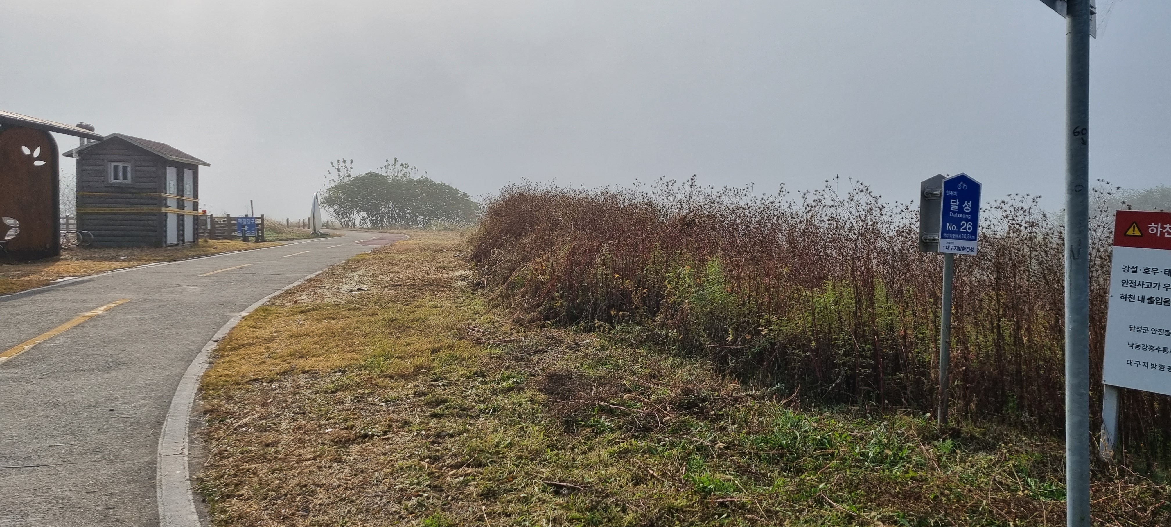 시간이 너무 늦은 것 같아 산을 넘어 합천창녕보로 가는 것은 포기하고 삼거리로 돌아가 차도를 따라 이방 정류장으로 향했습니다. 나지막한 고개를 넘어 다다른 이방사거리에서 음료를 사들어 목을 축인 후 저녁 5시에 출발하는 버스를 타고 서대구정류장으로 이동했습니다. 차들로 고속도로가 막혀 지체되었지만 19시25분에 대구역을 출발하는 수원행 itx에열차에 오름으로써 28번째 낙동강 따라 걷기를 끝마쳤습니다.