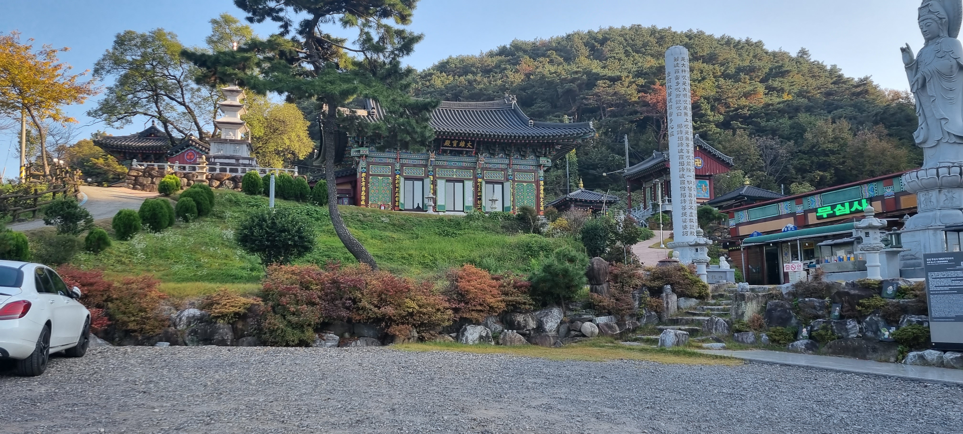 15시20분 무심사를 들렀습니다. 대암2리 정류장 앞에서 올라선 제방길을 따라가다 오른 쪽으로 무심사로 갈리는 삼거리에서 잠시 멈춰서서 합천창녕보는 다음 기회로 미루고 무심사를 다녀와 이방정류장에서 이번 탐방을 마무리할까, 아니면 무심사를 거르고 합천창녕보까지 진행할 것인가를 생각하다가 무심사에서 산을 넘어 합천창녕보로 가는 길이 있다는 것을 안내판에서 확인하고 쾌재를 불렀습니다. 제방에서 오른쪽 길로 내려가 부지런히 25분가량 걸어 무심사에 도착했습니다. 낙동강을 따라 걸으면서 사찰을 들른 것은 봉화의 적광사에 이어 여기 무심사가 두 번째입니다.