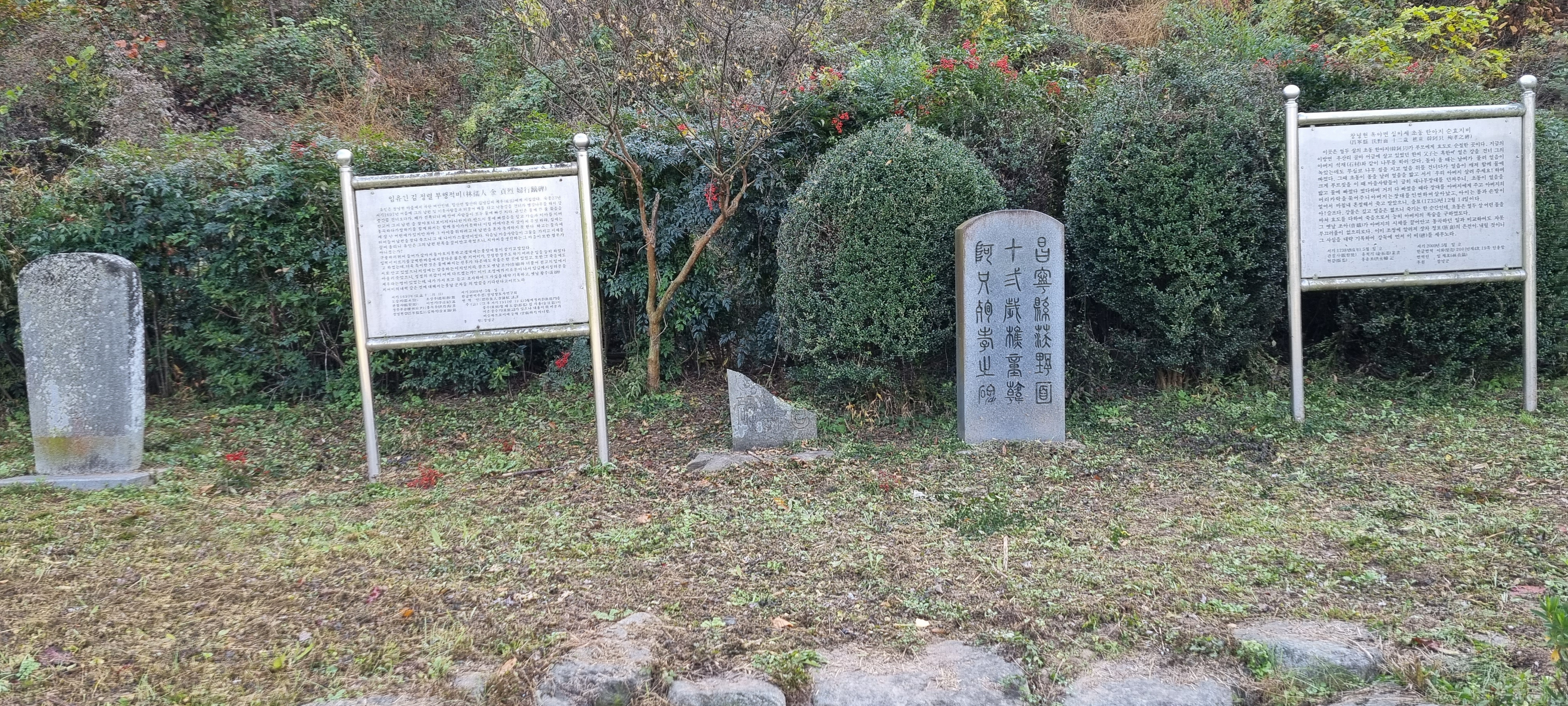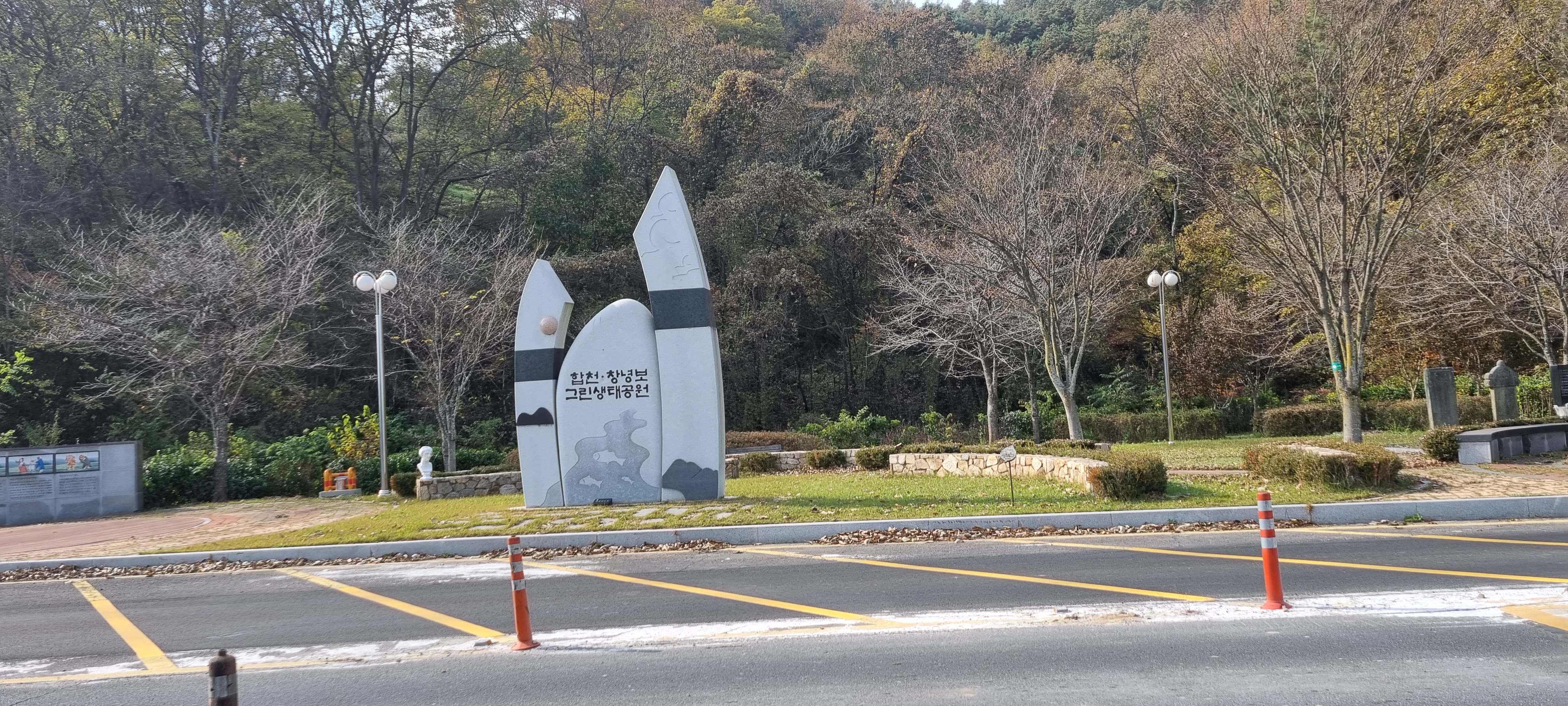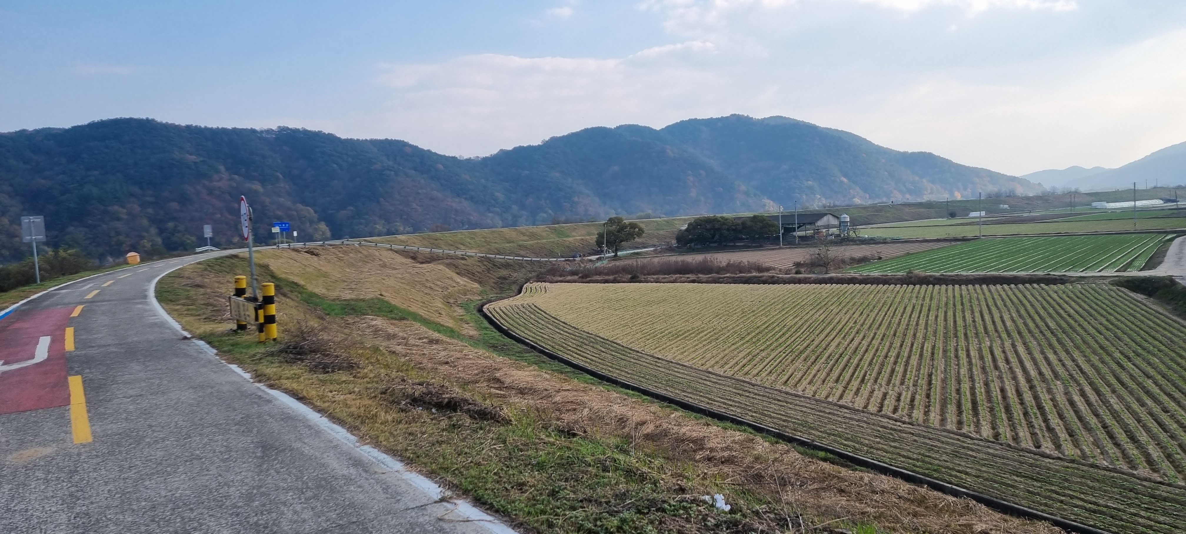 10시45분 이방정류장을 출발했습니다. 정류장 사거리에서 이방대합로를 따라 동진해 짧은 시가지를 벗어났습니다. 반듯한 한옥이 자리한 삼거리에서 왼쪽으로 꺾어 합천창녕보로 가는 길에 두 개의 비석을 보았습니다. 하나는 얼음 위를 걷다가 물에 빠진 아버지를 구하고자 물속으로 들어가 동네 사람들이 던져준 장대를 받쳐 아버지를 살리고 자신은 물속에서 얼어 죽은 아들의 효심을 기리기 위해 세운 ⌜창녕현옥야면 십이세초동 한아지 순효지비(殉孝志碑)⌟이고, 다른 하나는 배가 전복되어 물에 빠진 남편을 찾으려 물속에 들어갔다가 같이 죽은 열부의 행적을 기리는 ⌜임유인 김정렬 부행적비(婦行蹟碑)⌟ 였습니다. 이 지방의 특산물인 마늘이 잘 자라고 있어 가을걷이가 끝난 밭이 여전히 푸르렀습니다.