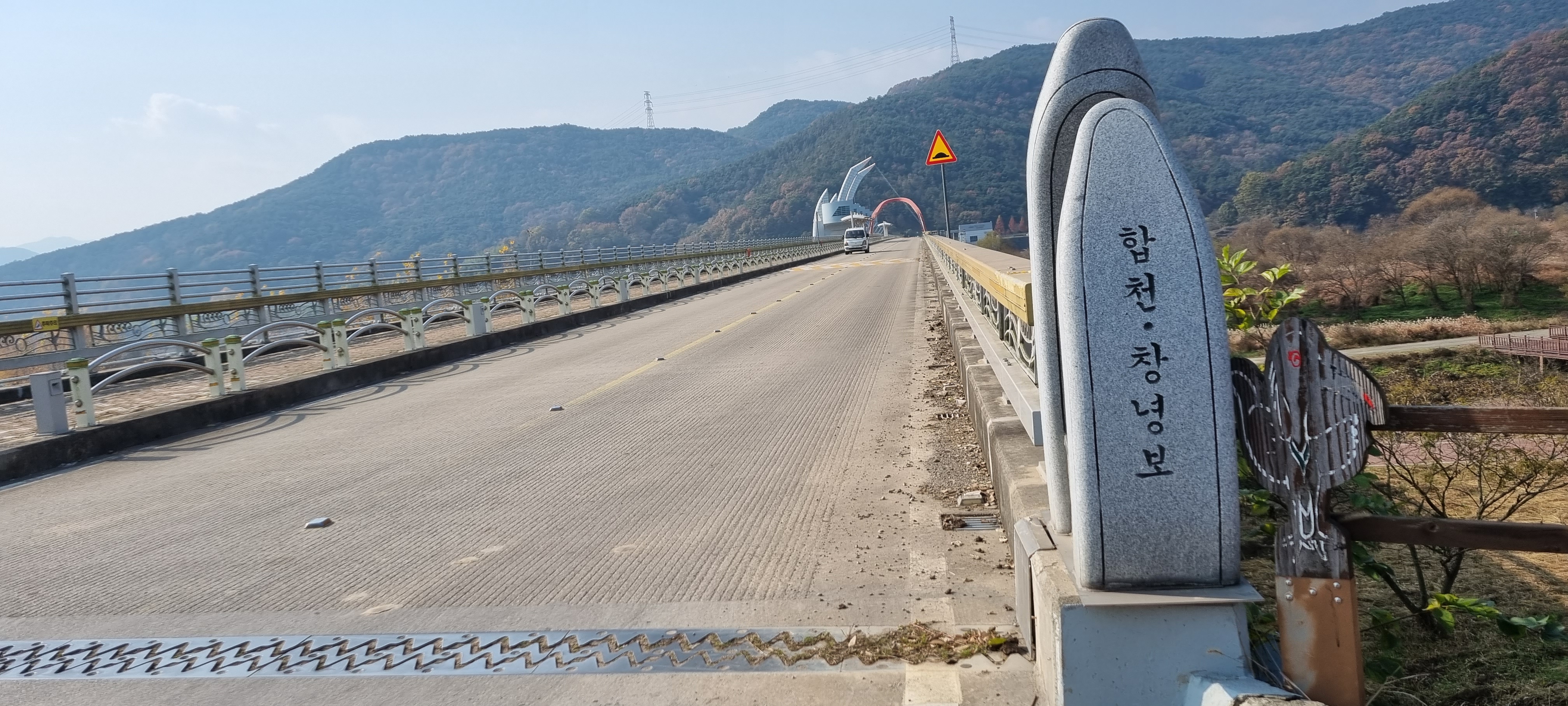 13시37분 청덕교에 다다랐습니다. 황강/낙동강 합류점에서 얼마간 황강을 거슬러 올라가 창덕교를 건너다 잠시 멈춰 다리 아래로 흐르는 황강을 조망했습니다. 황강은 경남거창군에 자리한 해발 1,254m의 삼봉산에서 발원해 거창군과 합천강을 흘러 낙동강으로 흘러드는 낙동강의 제1지류로 강 길이는 무려 111Km에 달합니다. 합천 해인사와 합천댐의 건설로 합천호가 만들어져 많은 여행인들이 합천을 찾는 다고 합니다. 황강의 기를 받은 합천 출신의 인물 중 으뜸인 분은 전두환(全斗煥, 1931-2021) 전 대통령이 아닌가 합니다.