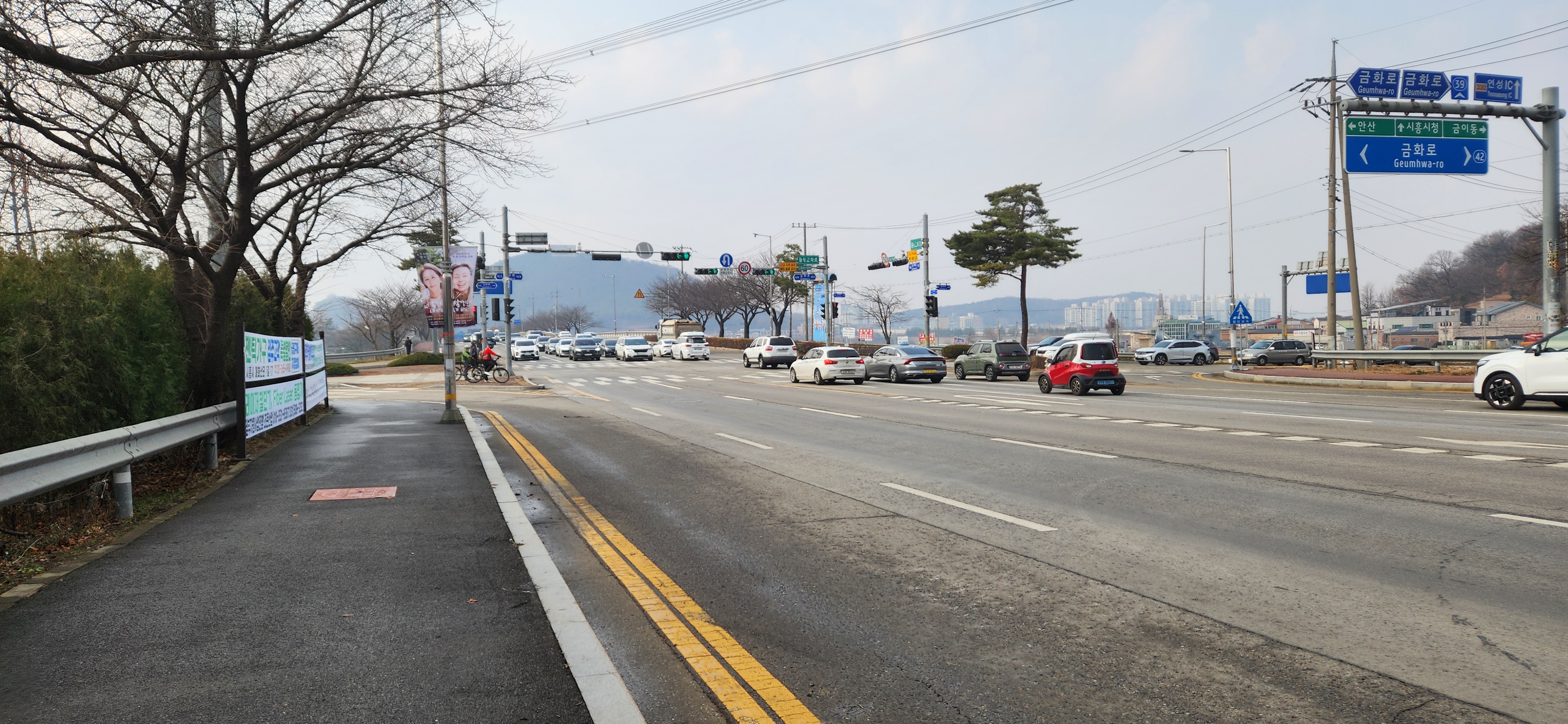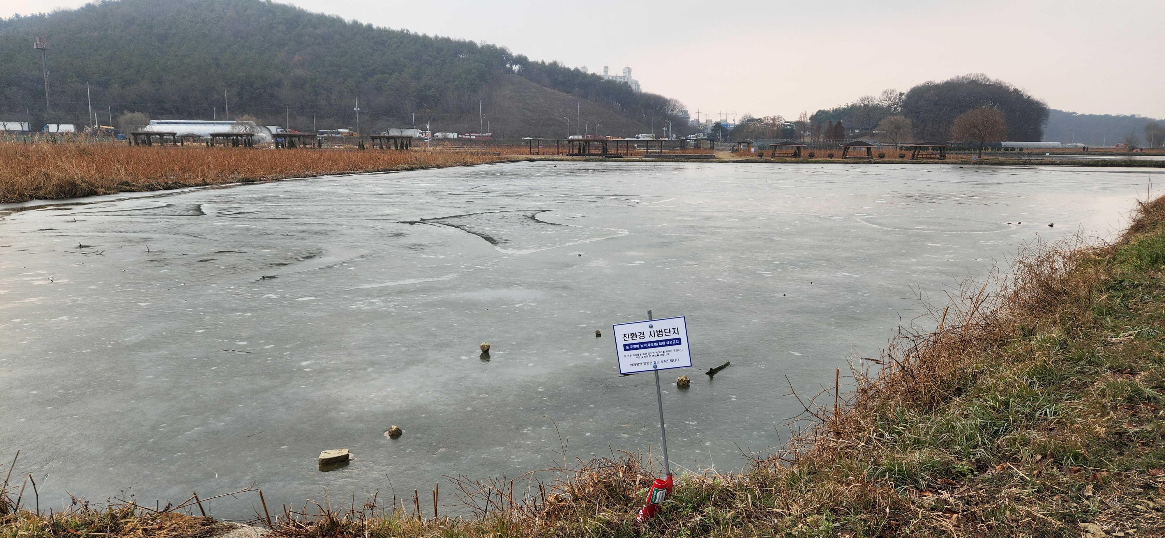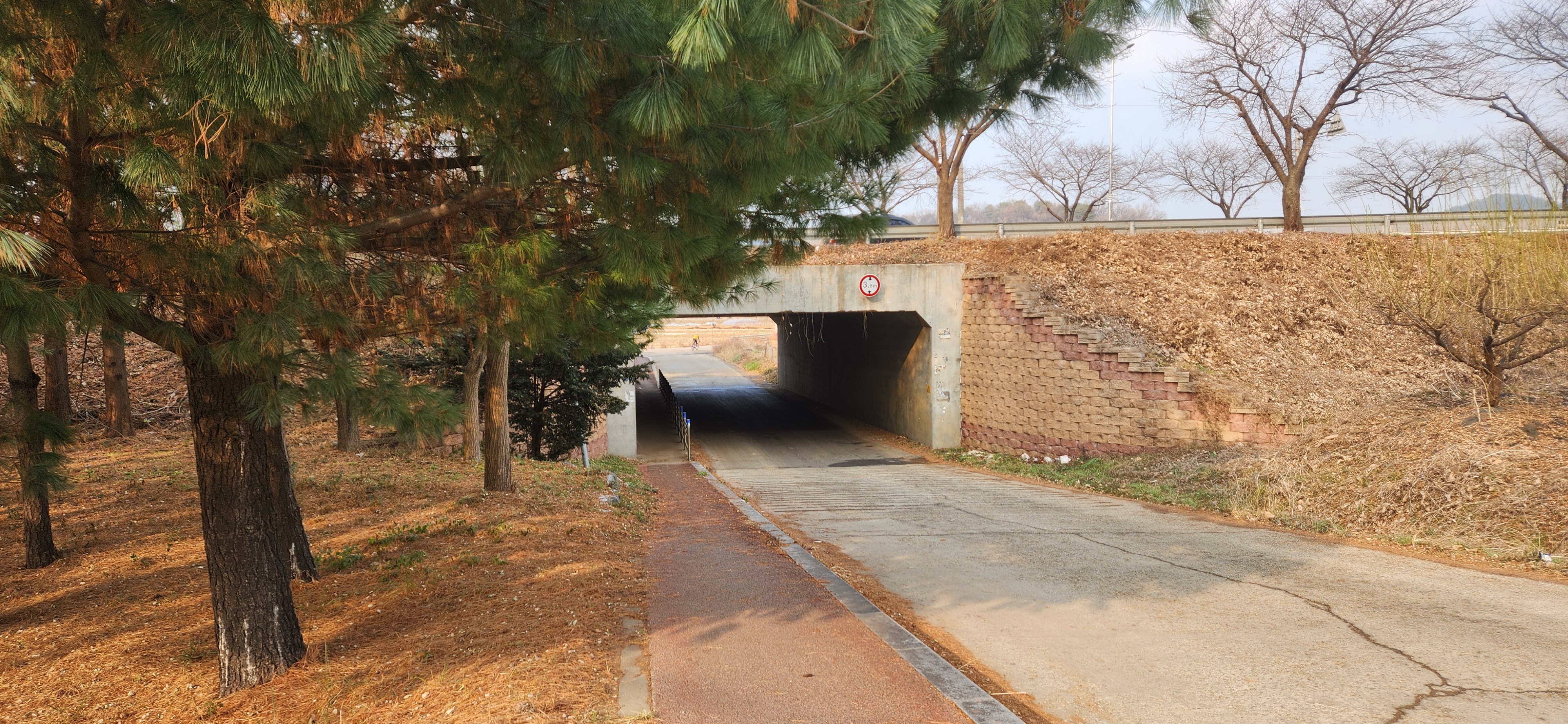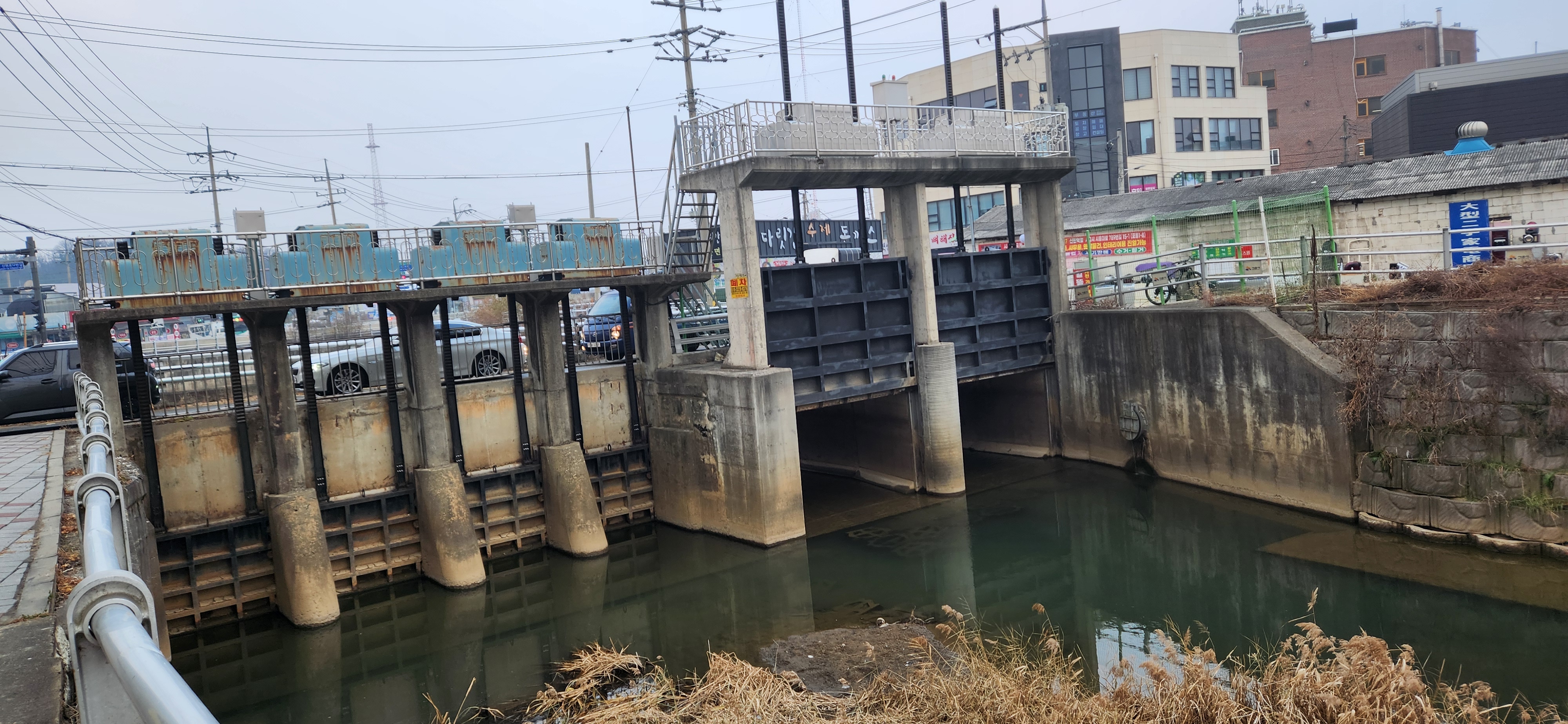 15시51분 은행천/보통천 합류점에 이르렀습니다. 수타박사 앞 하중로를 건너 다시 보통천 좌안 길로 내려섰습니다. 이어서 시흥대로가 지나는 하중2교를 밑으로 지난 다음 서해선 전철을 막 지나 다다른 곳이 은행천과 보통천이 만나는 합류점이었습니다. 이 합류점에서 조금 더 걸어 만난 작은 다리를 건너자 드넓은 벌이 눈 앞에 펼쳐졌습니다. 이 넓은 벌은 간척지인 것 같은데 확인하지는 못했습니다. 다리를 건너 신현역으로 가는 길은 은계호수공원에서 흘러내려오는 은행천을 거슬러 올라가는 은행천 우안길로 신현역 앞까지 이어져 걷기에 좋았습니다.