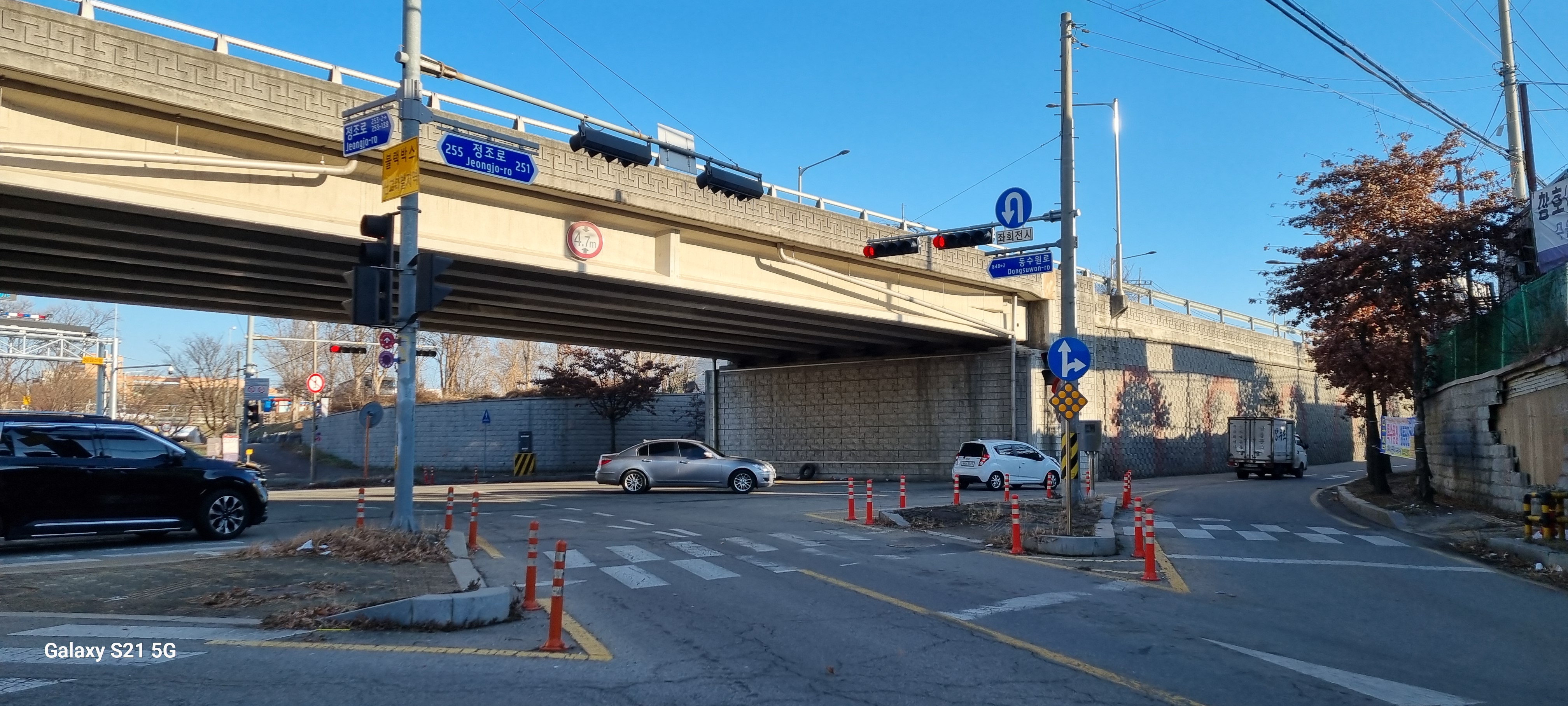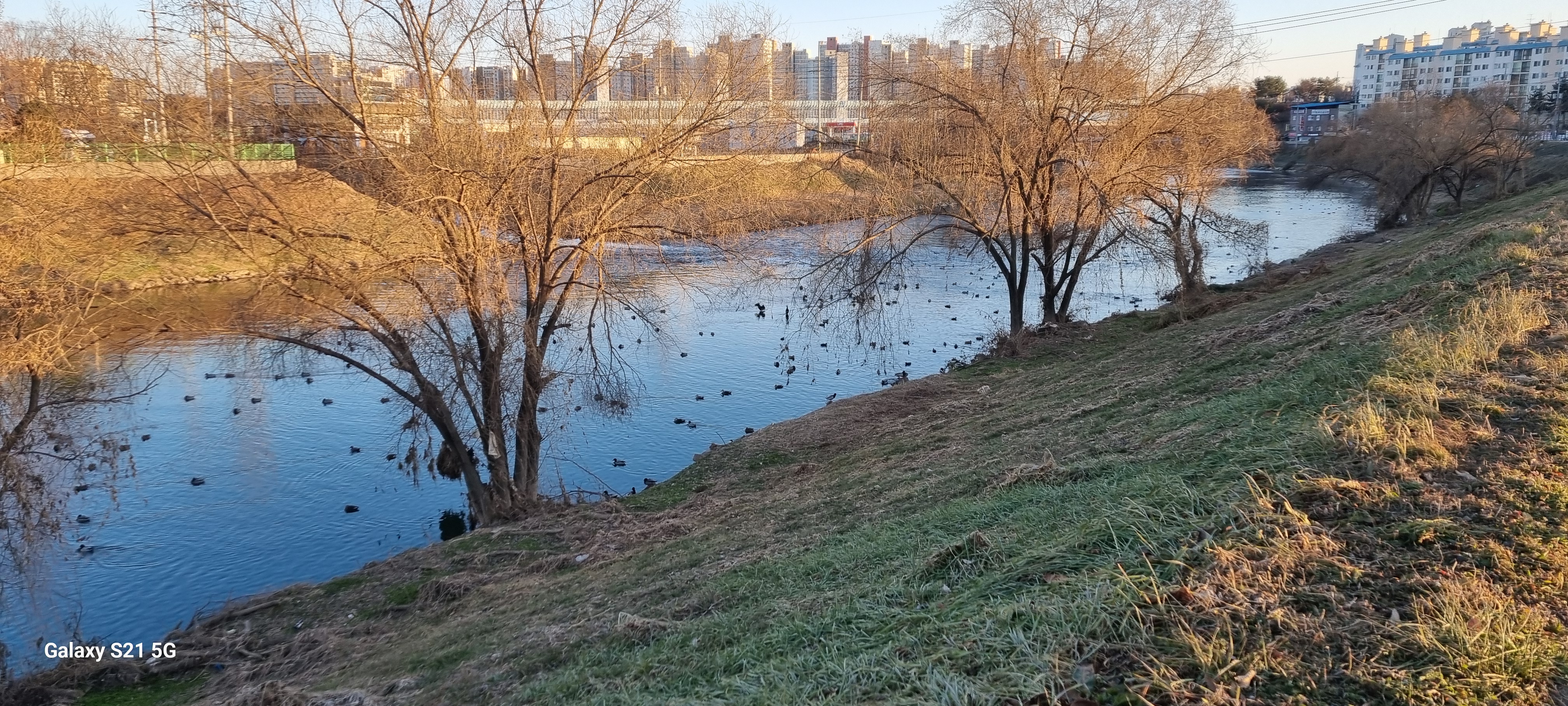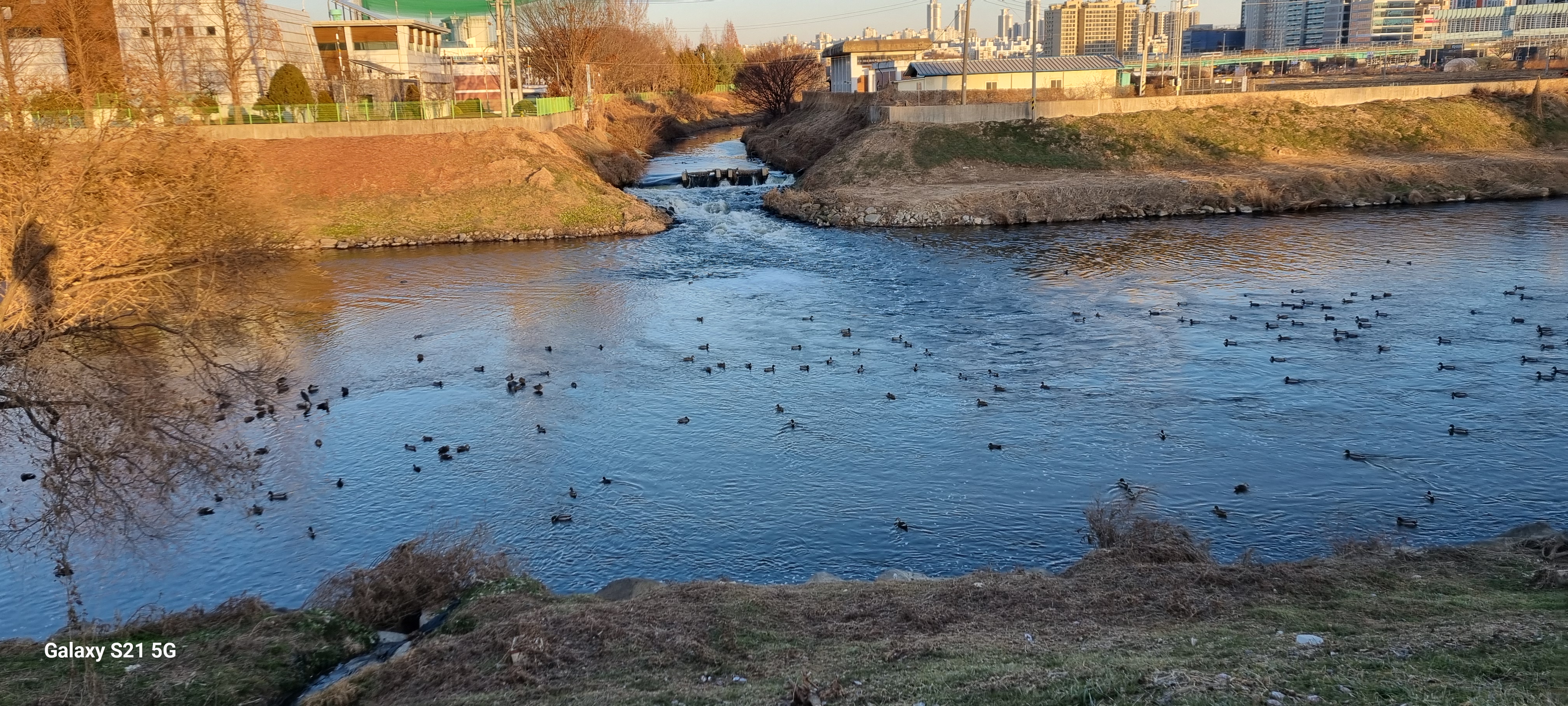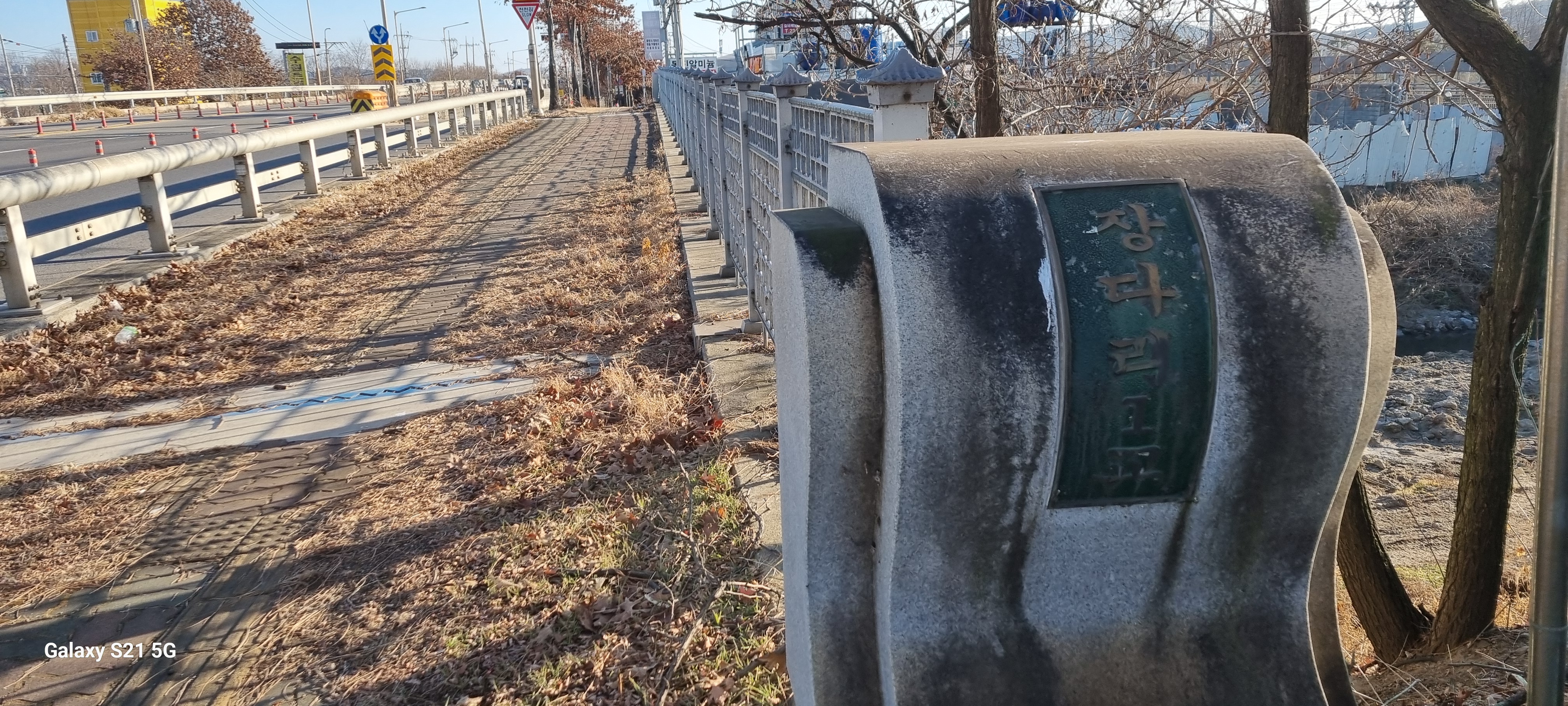 16시13분 황구지천에 다다라 수원천 따라 걷기를 모두 마쳤습니다. 장다리천이 수원천으로 흘러드는 합류점을 사진 찍은 후 사거리로 되돌아가 정조로를 따라 남진했습니다. 대황교를 건너면서 유유히 흐르는 원천리천을 내려다보자 다음에 이어갈 원천리천 따라 걷기가 기대되었습니다. .