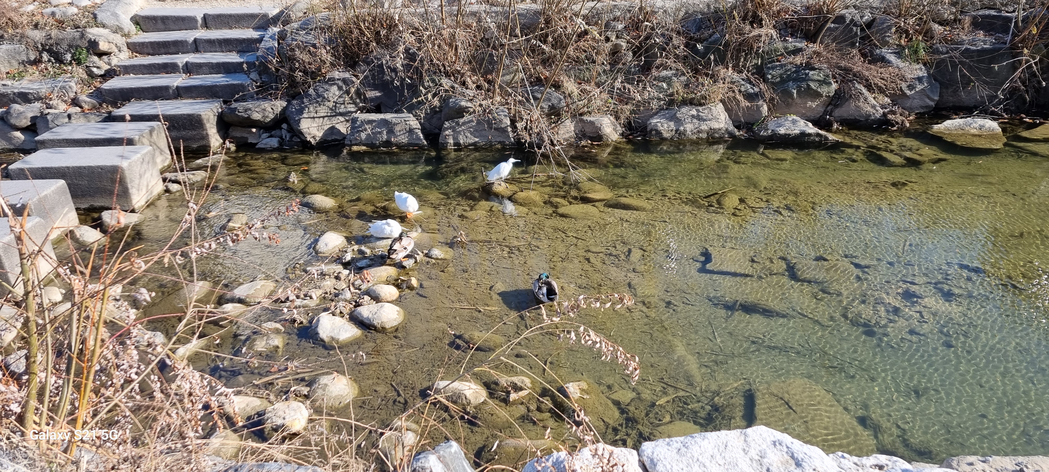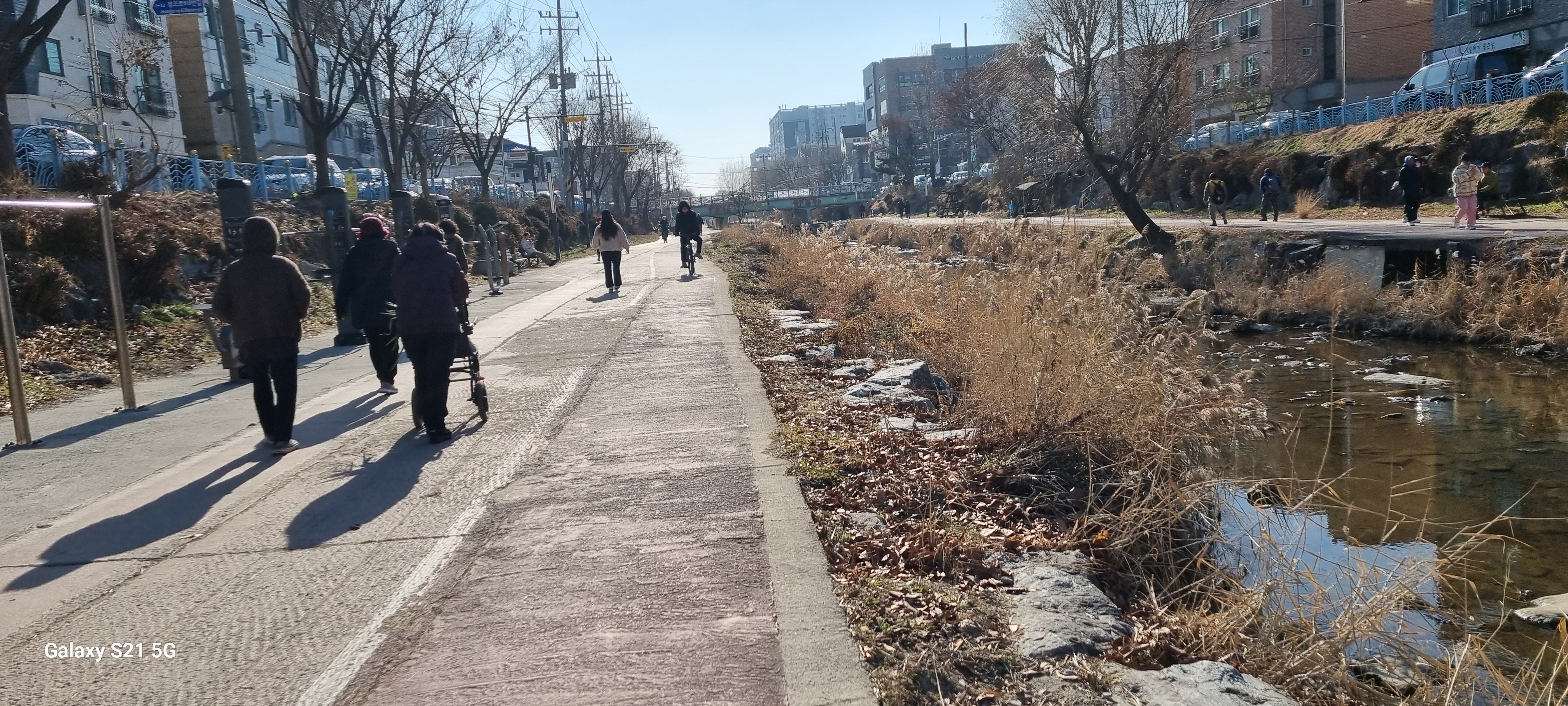 14시5분 매교역을 출발했습니다. 산본 집에서 수원의 매교역까지는 전철로 이동했습니다. 매교역 5번 출구로 나가 세천교 아래 수원천 좌안의 천변길로 내려섰습니다. 이틀 전에 소한(小寒)을 맞았는데도 날씨는 그다지 춥지 않아 맨손으로 사진을 찍어도 손이 시리지 않았습니다.