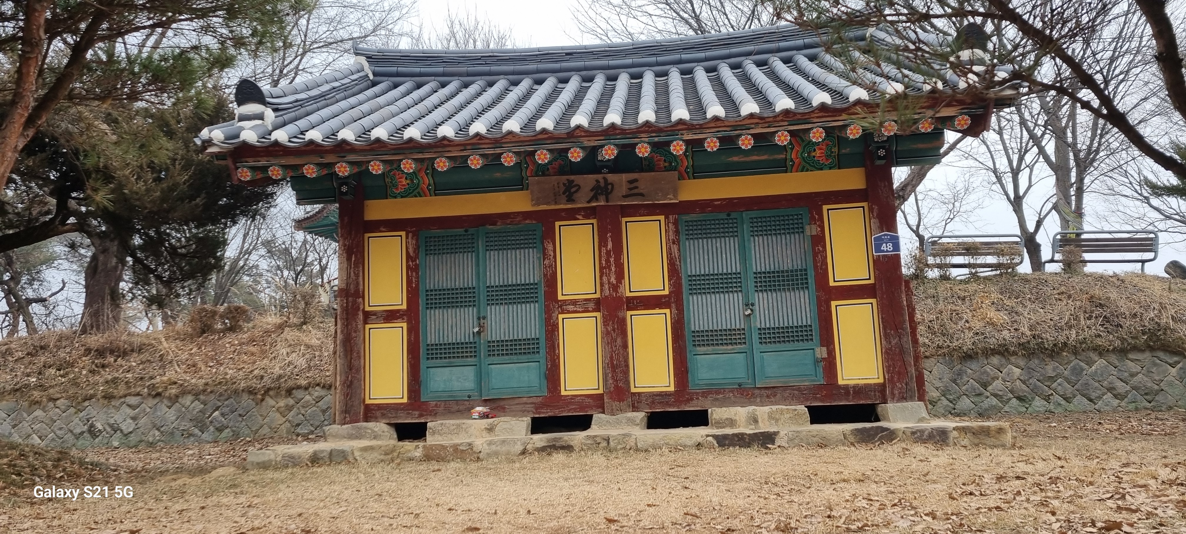 삼신당(三神堂)은 풍농과 사업의 번창, 무병장수와 마을의 번영, 발전 그리고 그리고 이포나루 뱃길의 안전과 풍어를 기원하기 위하여 삼신(三神) 즉 산신(山神), 성황신(城隍神)과 용왕신(龍王神)을 모신 제당(祭堂)을 이릅니다. 재난과 병마가 끊이지 않아 살기가 어려웠던 옛날에 이 마을의 촌장은 꿈에서 만난 도인의 말대로 산속 초가집에 사는 세 노인을 찾아가 어려운 사정을 이야기하자 세 노인은 기꺼이 도와주어 재난과 병마가 사라졌다고 합니다. 마을 사람들은 삼신당을 지어 세 노인, 즉 삼신을 정성스레 모셨다는 전설이 전해지고 있습니다. 구전되는 설화에 따르면 삼신당이 건립된 것은 여말선초 시대인 6백여 년 전으로 추정된다고 합니다.
