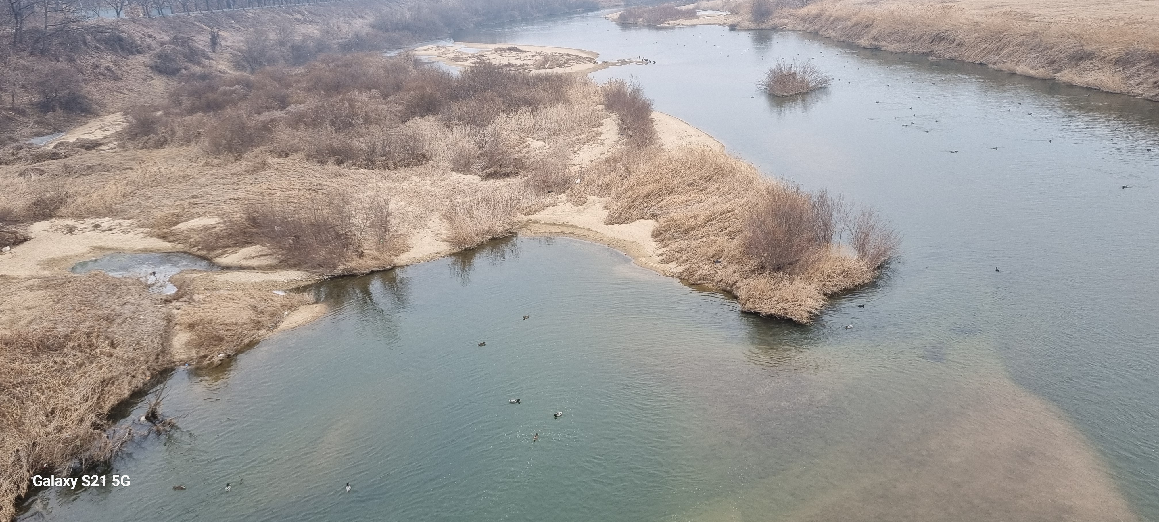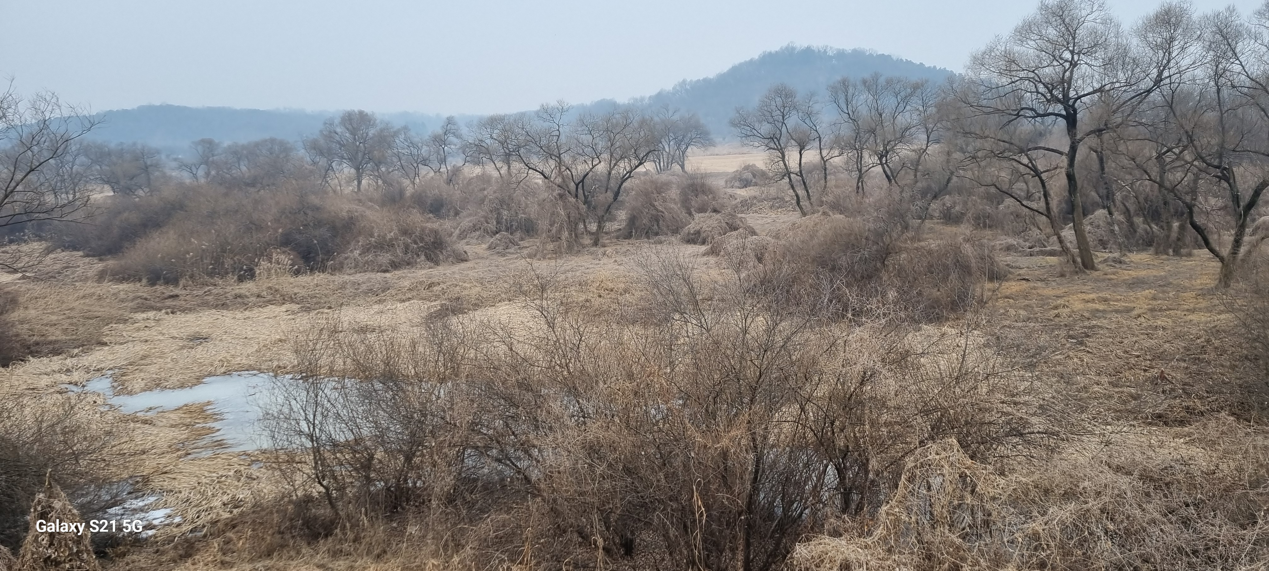 이야기바위를 사진 찍은 후 능백로가 지나는 상백2리 마을회관을 거쳐 다시 한강 좌안의 길을 따라 걸어 감동골부처울습지를 지났습니다. 이천시를 관통하는 복하천이 운반한 토사들이 쌓여 한강과의 합류점에 만들어진 감동골부처울습지는 꽤 넓어 보였습니다.