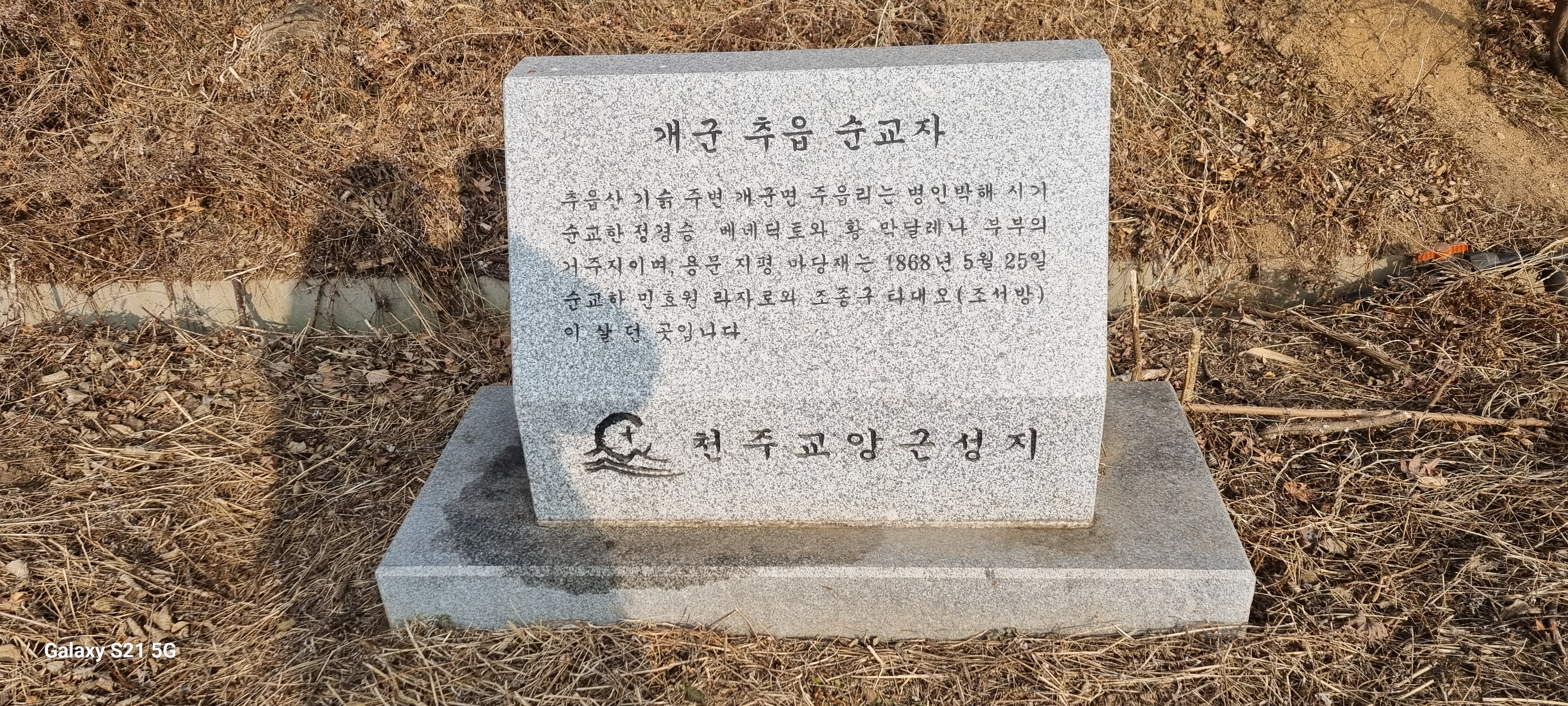 양평의 상자포리로 들어서 강변길을 따라 걷다가 비석을 천주교양근성지임을 알리는 비석을 보았습니다. 개군추읍순교자를 기리는 비석에는 “추읍산 기슭 주변 개군면 주읍리는 병인박해 시기 순교한 정경승 베네딕토와 황 막달레나 부부의 거주지이며, 용문 지평 마당재는 1868년5월 순교한 민호원 라자로외 조종구 타대오(조서방)이 살던 곳입니다.”라고 적혀 있었습니다. 프랑스 선교사와 한국의 천주교신자들이 무참하게 처형된 병인박해의 상흔이 이 시골에서도 남아 있으리라고는 천주교신자인 저도 생각지 못했습니다.