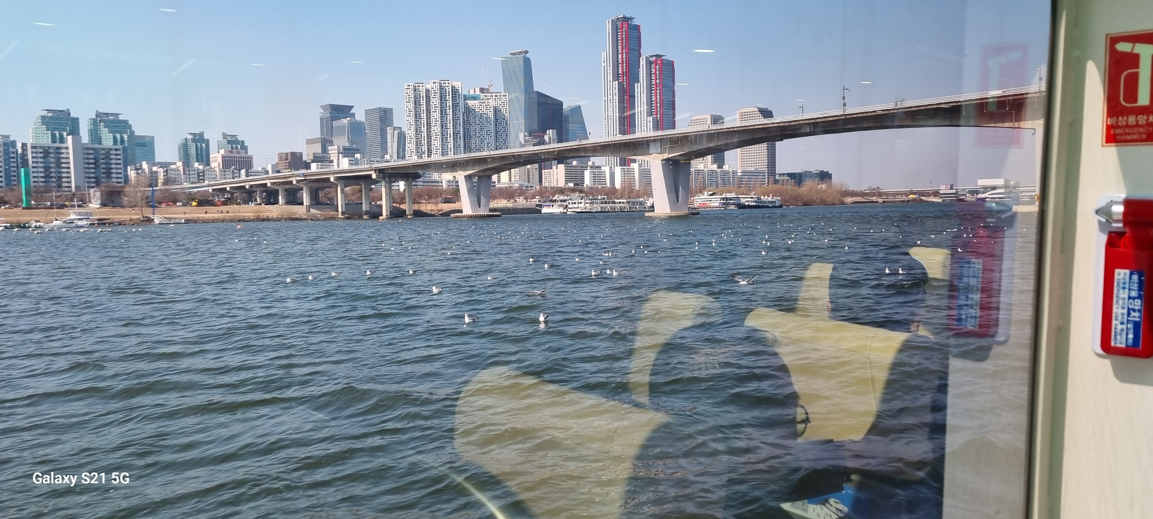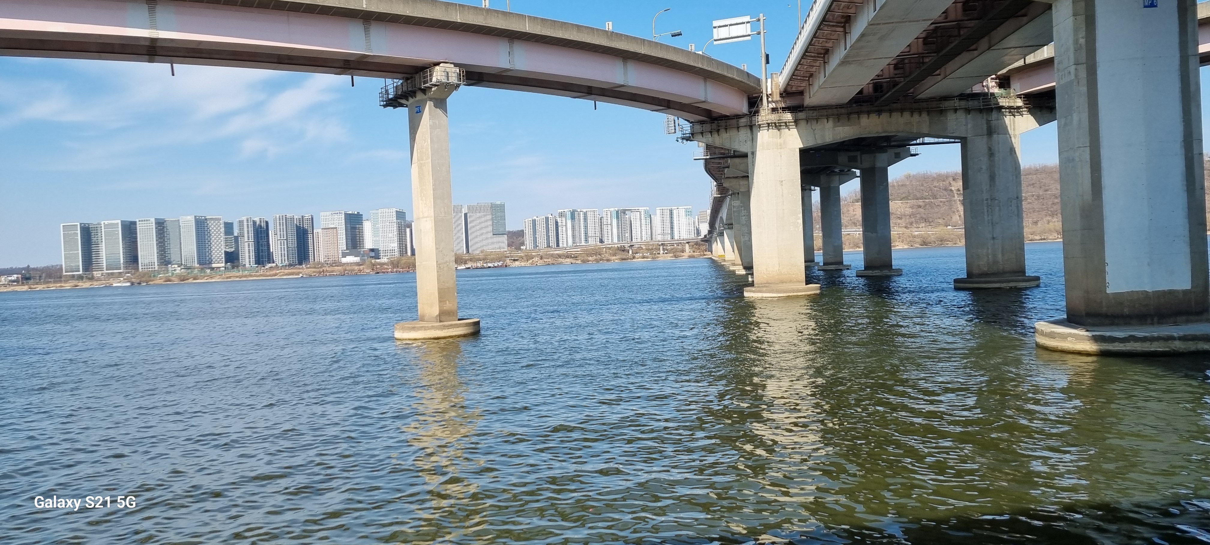 31회의 한강 탐방 중 이번이 가장 활기찼다고 생각한 것은 한강 위를 오가는 배들이 가장 많이 보여서입니다. 그 배들은 최근에 운항을 시작한 한강버스이거나, 아주 오래 전부터 한강을 오르내리기 시작한 유람선들입니다. 또 하나 다리 위로 전철이 강을 건너다니는 것은 서울의 한강이 아니고는 쉽게 볼 수 있는 풍경이 아니어서 더욱 활기가 느껴졌습니다.