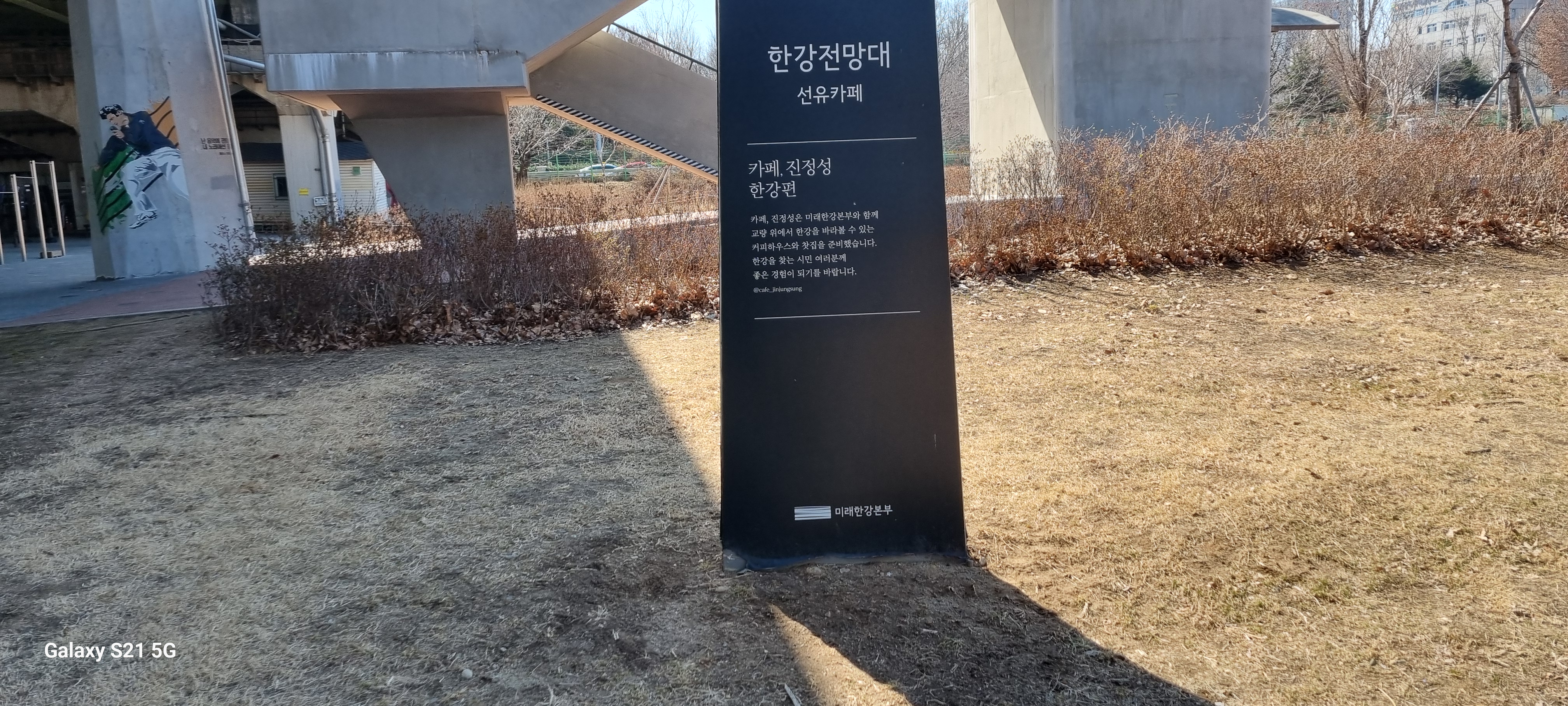 시간만 넉넉했다면 다리 위 한강전망대 선유카페를 들러 따끈한 커피를 마시면서 한강을 내려다보는 여유를 즐겼을 텐데 그리하지 못해 많이 아쉬웠습니다. 이 다리를 건너면 선유도공원에 닿게 되는데, 이 공원은 9년 전 고교동창들과 함께 탐방해 우산을 펴 들고 빗길을 걸은 적이 있습니다. 선유카페를 지나 다다른 양화선착장은 지은지가 오래 되어서인지 한강버스선착장만큼 깔끔해 보이지 않았습니다.