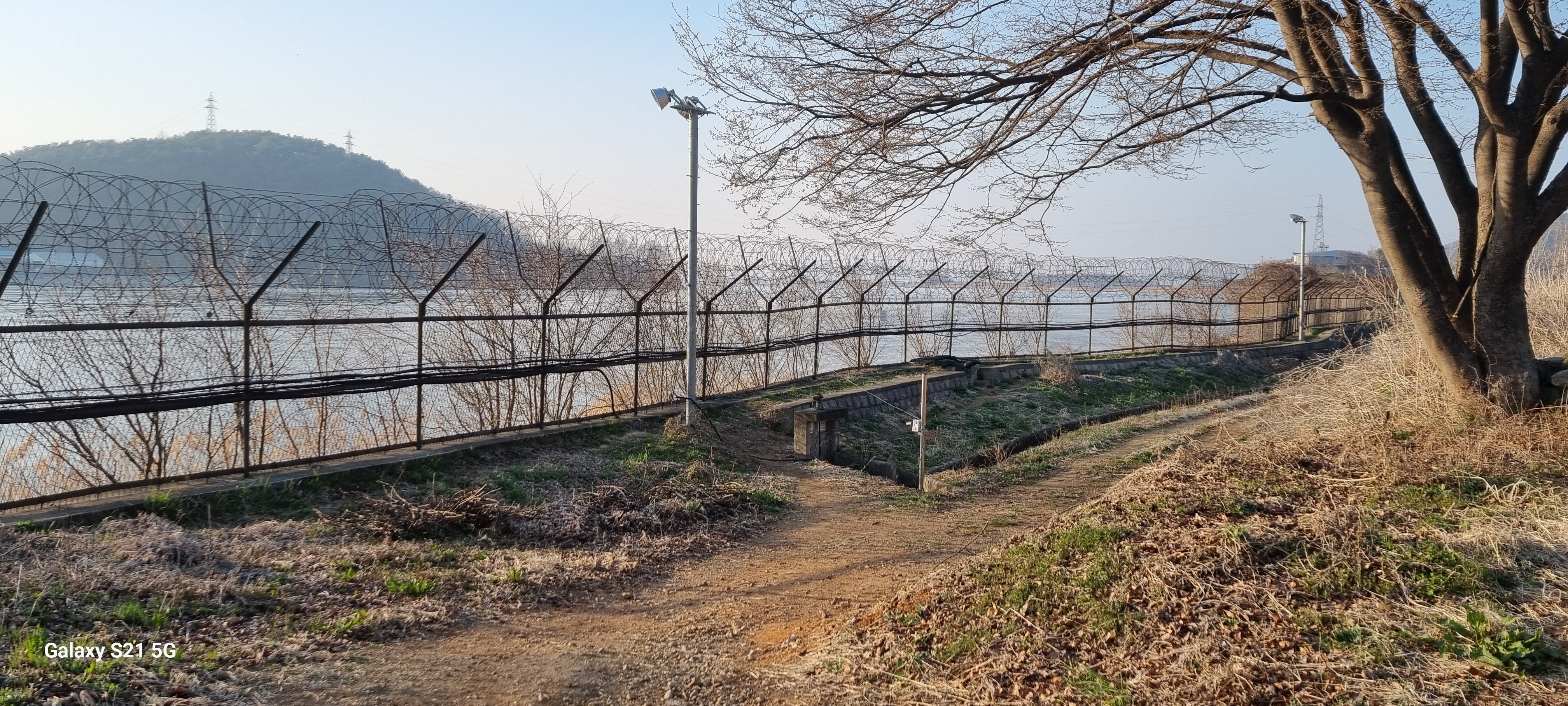 이번에 마지막으로 한강을 따라 걸은 구간은 김포시의 최북단 지역인 애기봉입구에서 보구곶리검문소까지입니다. 이 구간 중 용강리검문소에서 보구곶리검문소까지의 강변길은 민통선 안에 있어 이 지역 주민이 아니면 통행이 불가능하다는 것을 전날 군부대에 문의해 확인했습니다. 이번 한강탐방에서 가장 중요한 것은 한강의 종점인 유도를 보다 가까운 곳에서 조망하는 것인데 용강리검문소-보구곶리검문소 구간을 지날 수 없다는 것을 알고 나서 많이 실망했습니다.