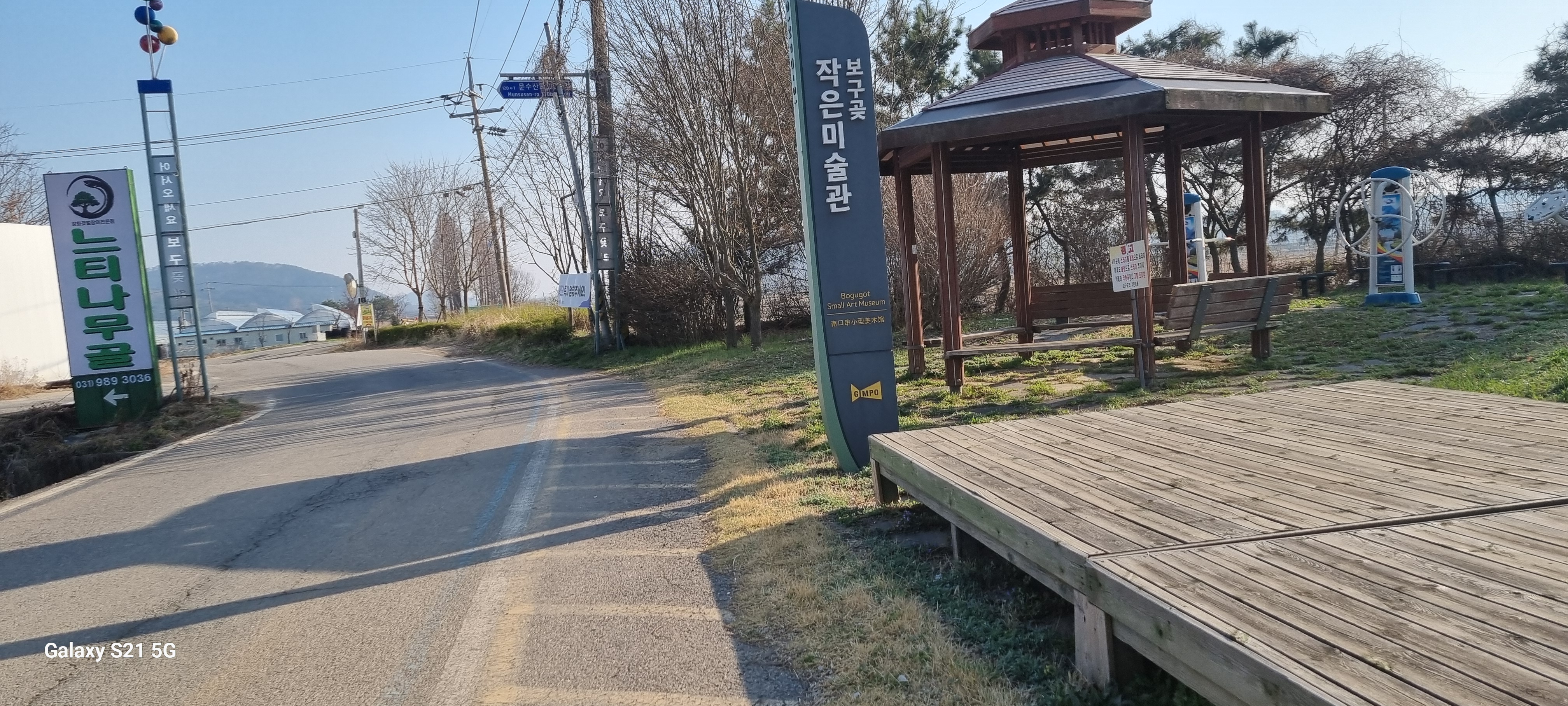 곧바로 검문소를 출발해 성동검문소교차로로 향했습니다. 20분 가까이 걸어 제가 알기로는 북한과 가장 가까운 곳에 자리한 ‘작은미술관 보구곶’을 들렀습니다. 미술관의 여직원이 친절히 안내해 고마웠는데, 전시 작품이 많지 않아 별로 시간이 걸리지 않았습니다. 부지런히 걸어 문수산성 북문과 남문을 차례로 지나 평화누리길 2코스가 시작되는 지점에 도착하자 7년전 평화누리길을 걸을 때 이곳에서 시작한 문수산 산행이 생각났습니다.