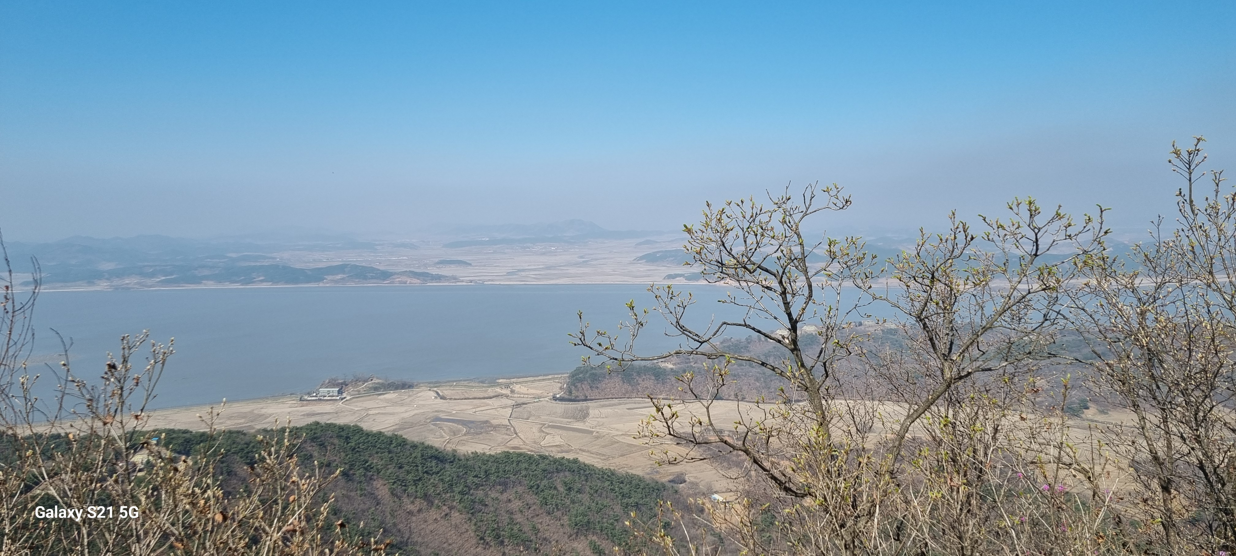 유도는 이번에 처음 본 것이 아닙니다. 한남정맥을 종주할 때 이 지점에서 두 번 보았고 일주일 전에 애기봉에서도 보았습니다. 가장 가까운 곳에서 유도를 본 것은 3년 전 강화도의 연미정(燕尾亭)에서 보았을 때입니다. 이번에 유도를 조망한 것이 특별히 의미를 갖는 것은 한강 따라 걷기를 마무리지을 수 있어서입니다. 한강의 발원지는 태백시의 검룡소라고 거의 다 알고 있지만 한강의 끝점인 하구가 유도의 중간을 남북으로 이은 선이라는 것을 아는 사람은 많지 않습니다. 장장 494Km나 한강을 따라 걸어 유도가 깔끔하게 내려다보이는 여기 270m봉에 오름으로써 한강은 물론 낙동강, 금강, 섬진강, 영산강, 안성천 등 남한 땅 6대강 따라 걷기를 모두 마쳤습니다. 약1,800Km에 달하는 6대강 따라 걷기를 성공리에 마친 것이 특별한 의미를 갖는 것은 70대의 나이에 혼자서 해냈기 때문입니다.