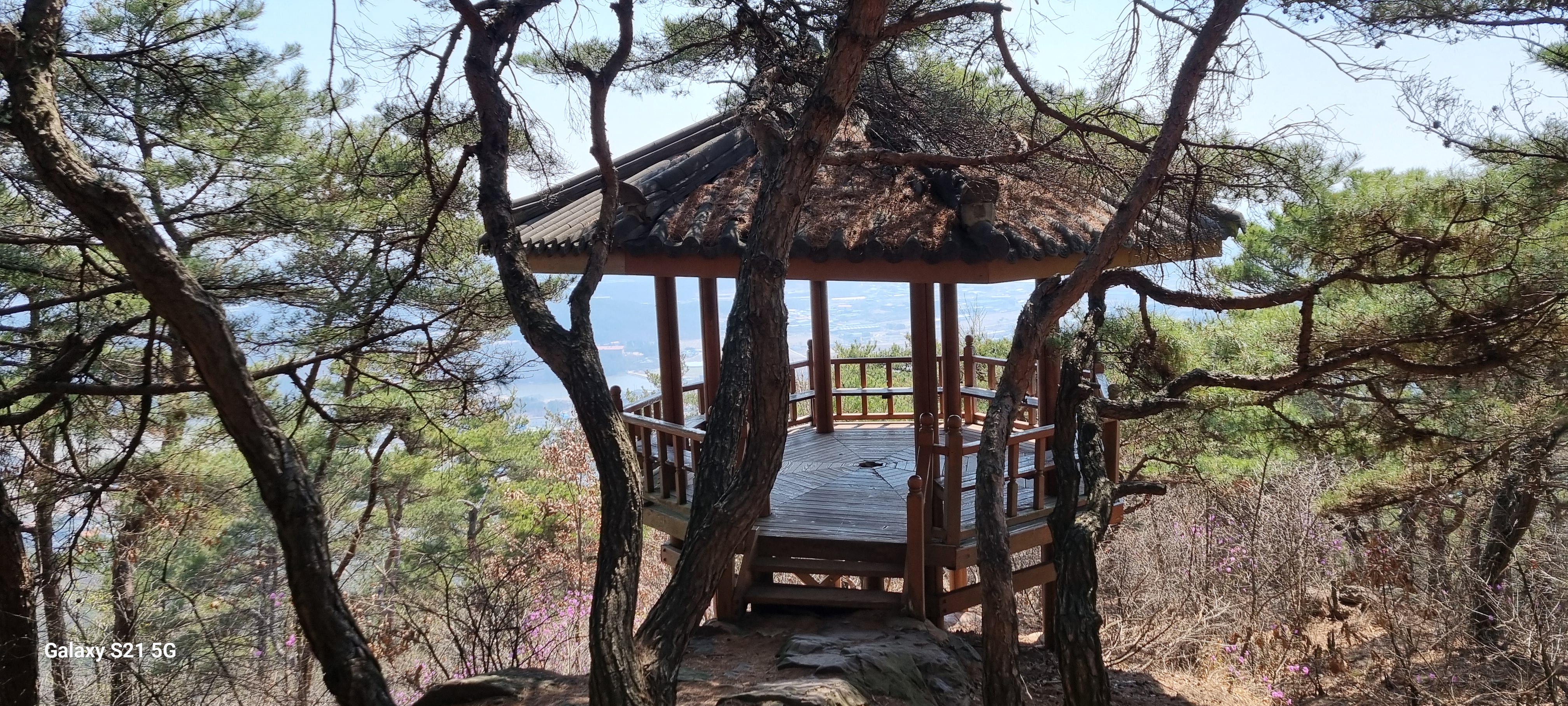 8시42분 애기봉평화공원입구를 출발했습니다. 방금 걸어온 길을 0.2Km가량 되돌아가 2019년 평화누리길을 탐방할 때 지났던 애기봉입구에 다다라 오른쪽으로 이어지는 산길로 들어섰습니다. 산 너머 남촌에서 봄바람이 불어와 파릇파릇 잎들이 돋아나고 진달래가 연분홍 꽃을 피웠습니다. 산길은 돌무덤에 이르자 오름 길에서 내림 길로 바뀌었습니다. 마을 초입의 녹 슬은 양철 지붕 옆 좁은 길을 지나 조강포로 가는 중 할머니 한 분을 만나 인사를 나누었습니다.